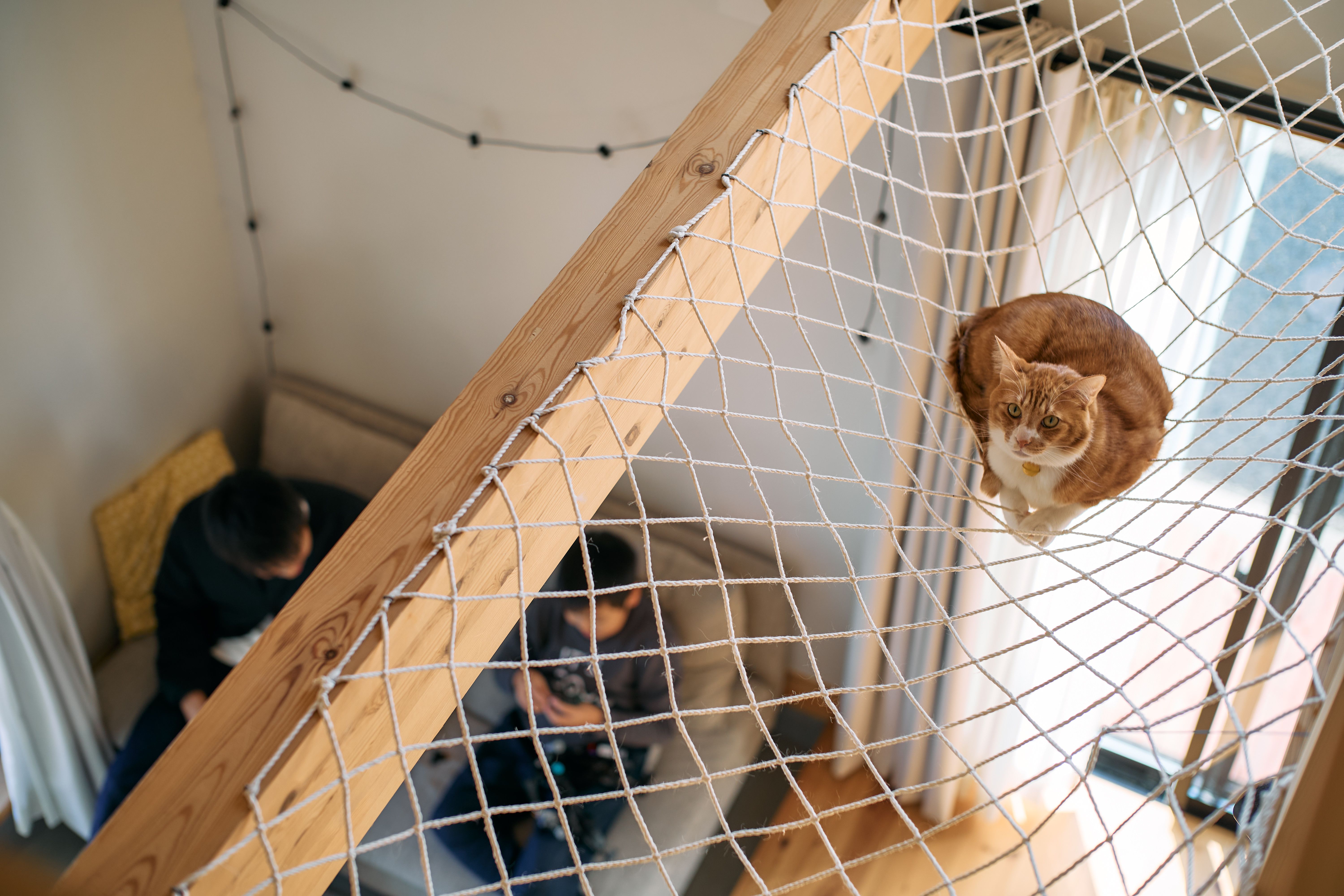 BinOの家は、開放的な間取りやスキップフロア、自然素材の心地よさなど、ワンちゃんやネコちゃんが自由に、のびのびと動き回れる工夫がいっぱい。